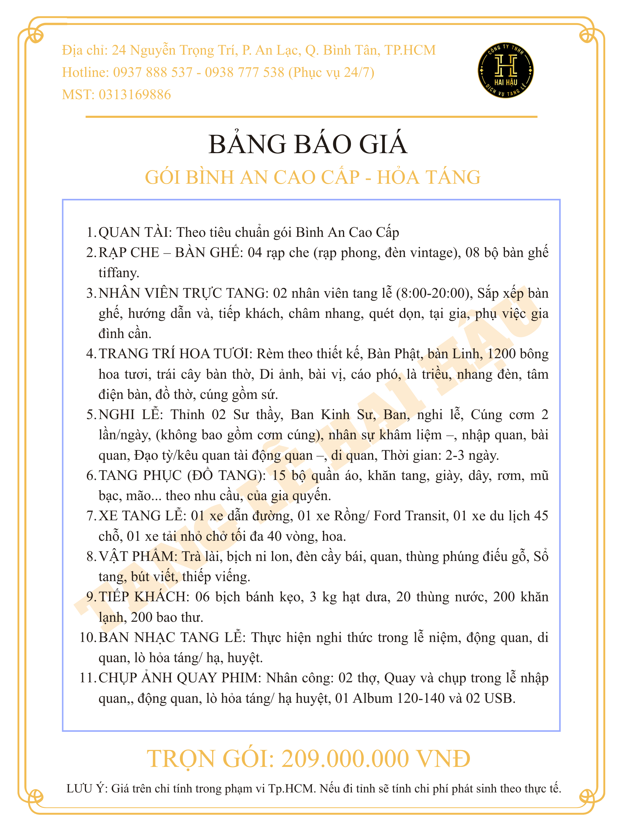 Gói BÌNH AN CAO CẤP-Hỏa Táng